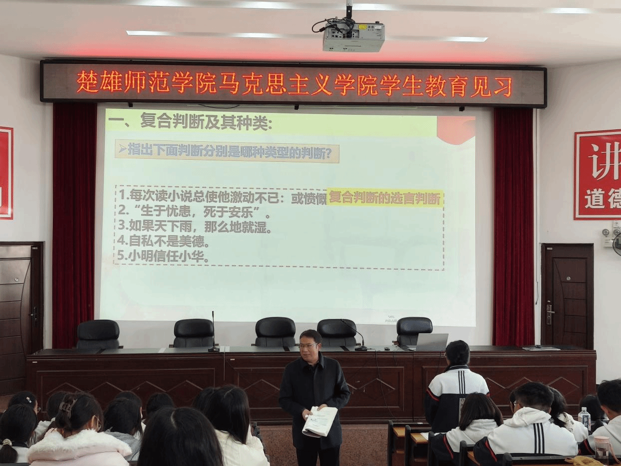 12月5日,2023级同学再次走进附中,聚焦教学研究的深度实践。活动涵盖了多位优秀教师的说课展示与《正确运用复合判断》的公开课观摩。从“坚持新发展理念”的宏大主题到逻辑学复合判断的具体讲解,同学们在案例研讨中深化了对“学生主体”“素养导向”等现代教学理念的理解。